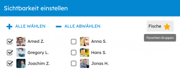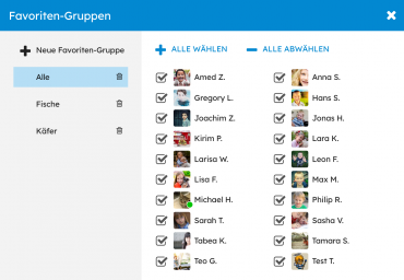 Die Favoriten-Gruppen werden für den Kurs gespeichert und mit allen anderen Lehrpersonen im Kurs synchronisiert.