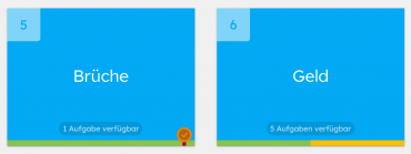 An den Lerneinheiten werden die Selbsteinschätzungen als farbige Linie unterhalb der Kachel dargestellt. Hat die Lehrperson ebenfalls Einschätzungen vorgenommen, werden diese ebenfalls klein dargestellt.