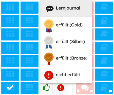 Die Lehrperson kann z.B. im Arbeitsstand am Ende eines Themas ein Bewertungssymbol (Medaille) mit verschiedenen Farben setzen. Die Interpretation ist wiederum der Lehrperson überlassen. Zum Beispiel können die Farben für erreichte Kompetenzniveaus verwendet werden.