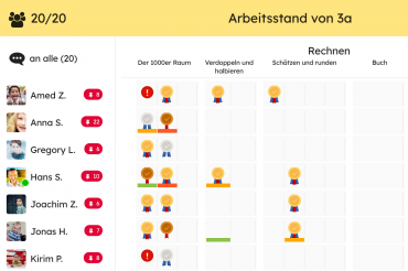 Die Beurteilung durch die Lehrperson kann, muss aber nicht verwendet werden. Die Schülerinnen und Schüler sehen erst Medaillen, wenn diese vergeben wurden.